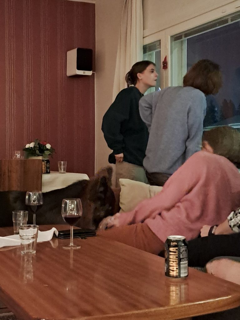 Aattopäivänä käytiin hangessa peuhaamassa.